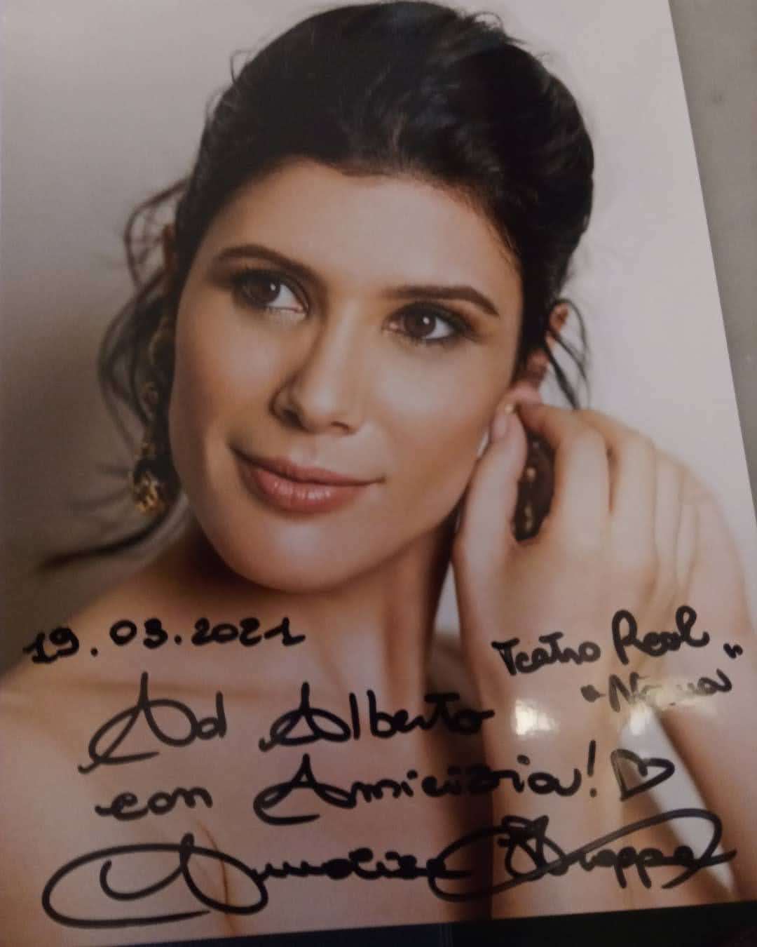Finalmente el viernes 19 de marzo el día del padre, antes de la última función de Norma, Nemorino y Annalisa Stroppa se despiden con un fuerte abrazo, ambos están agradecidos como demuestran sus presentes, una caja de caramelos violeta y tres fotos firmadas con cariño.